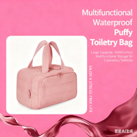 Borsa cosmetica OEM di grande capacità, comoda borsa da toilette portatile, soffice e leggera, grande borsa da bagno ad apertura ampia